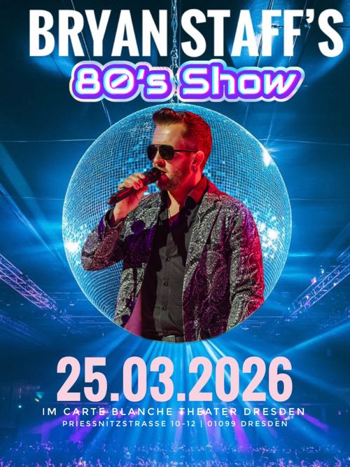 Am Mittwoch, den 25. März 2026, präsentiert Bryan STAFF exklusiv im berühmten Carte Blanche sein ganz persönliches Herzensprojekt: "Personal Tribute to the 80s". Es ist die ultimative 80er-Jahre-Revue, die das Jahrzehnt der Synthies, Rock-Hymnen und Pop-Ikonen wieder aufleben lässt.Mehr als ein Konzert – Eine Reise in die Party-Ära!Tauchen Sie ein in die aufregende Disco-Zeit und die Ära der großen Stadion-Hymnen. Diese Show ist eine emotionale Zeitreise durch Bryan STAFFs musikalische Erinnerungen und eine